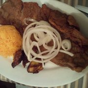 Grilled "palomilla" steak the classic cuban thin flat steak with french fries or sweet plantains $12.95 with white rice, black beans and sweet plantains $14.50